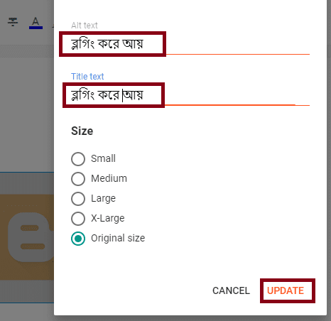 এবার এখন ছবিটি আপনি আপনার ব্লগের আর্টিকেল এর মধ্যে যে জায়গায় দিতে চান সেই জায়গায় আপলোড করে দিন।